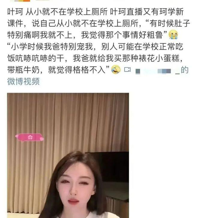 更早之前,叶珂还自曝读小学时她不在学校上厕所,觉得在学校上厕所是很粗鲁的事儿,看得网友们下巴都惊掉了: