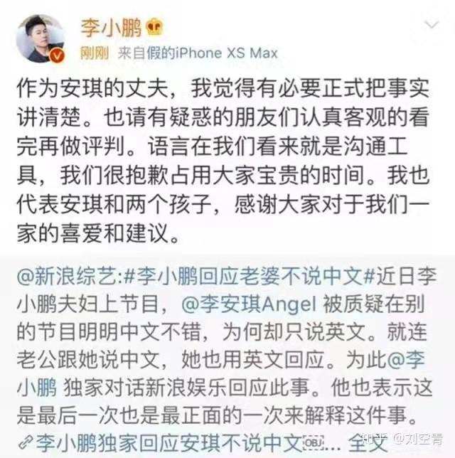 看着妻子的口碑越来越差,李小鹏更是在微博上公开转发为李安琪辩解,结果,事与愿违,李小鹏也被网友炮轰。