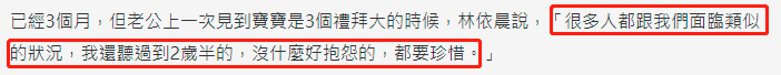 说起孩子,林依晨还透露老公林于超上一次见女儿的时候她才刚出生三周,如今宝宝已经三个月大了,林于超目前在隔离中,根本没机会见孩子。