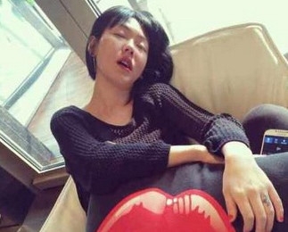 小S将头斜靠在椅背上打瞌睡,嘴巴还大张着,和身前抱枕上的红唇图案十分相像,就连小S自己也惊呼道:“好巧!”有人则调侃:“流口水了吧?”