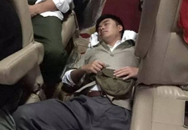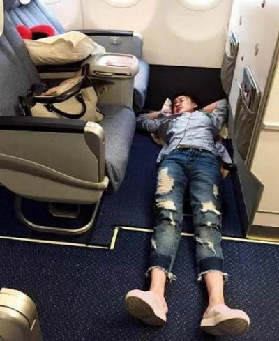 宋佳整个人四仰八叉睡在飞机地板上,丝毫不顾及身在何处……可见是累坏了。