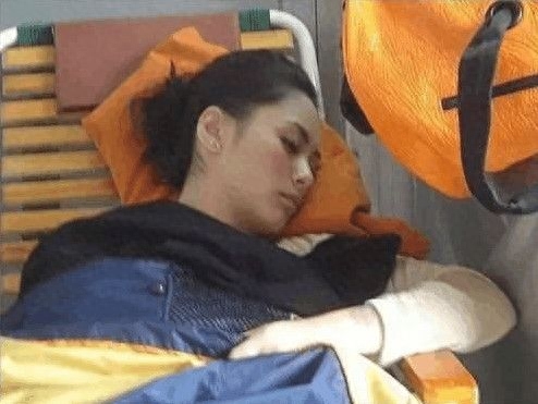 赵薇坐在折叠椅上,一只二郎腿翘在矮桌上,蒙着羽绒服呼呼大睡,活生生一个女汉子形象,只是蒙着头睡觉呼吸不困难吗?