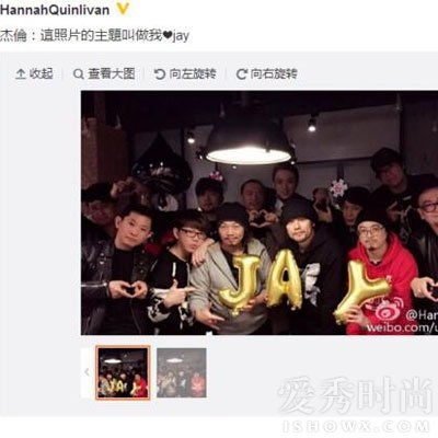 黑完老公的昆凌也不忘毕竟周杰伦过生日,还是十足的晒了下恩爱,另一张照片是众人拿着“JAY”的气球集体比爱心,昆凌更用老公口吻表示“这照片的主题叫做我爱Jay”,透露出天王满满的公举心。让不少网友都大呼眼睛被闪瞎了!