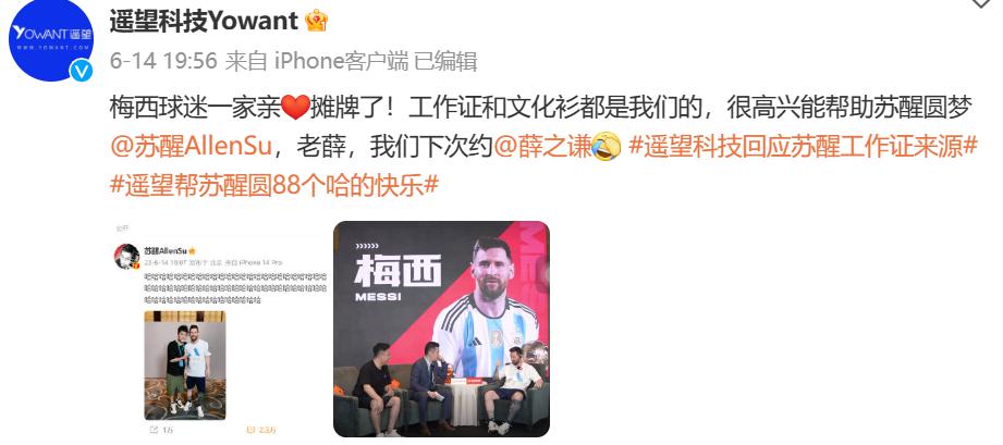 今年五月,梅西在中国的直播也是在遥望科技旗下的李宣卓直播间进行的,梅西铁粉苏醒也成功圆梦见到了偶像。