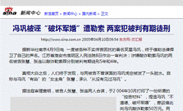 当然,张慧所说的负责任,就是要求冯巩给50万的封口费和青春损失费。