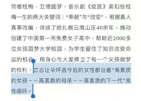 就像早在去年,由张桂梅事迹改编的音乐剧《绽放》。