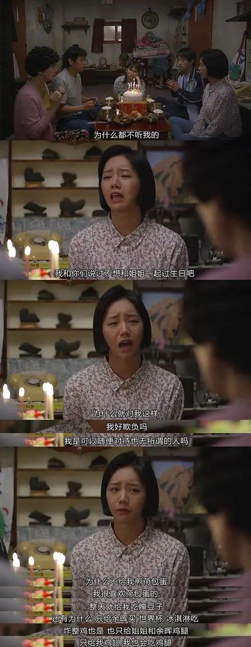 比如德善作为二女儿,没有姐姐和弟弟受宠,过生日要和姐姐一起过,爸爸还瞒着家里偷偷给弟弟买很贵的冰淇淋。