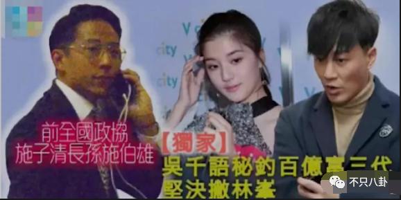 绯闻最早是在2018年传出来的,当年3月吴千语与林峯分手后,港媒称她很快搭上了身价百亿的【富三代】施伯雄↓