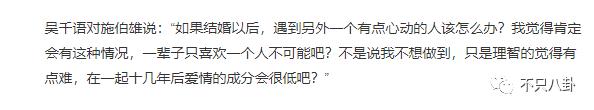 吴千语回答很直接:肯定会有这种情况,一辈子不可能只喜欢一个人,不是自己不想做到,而是理智上觉得有难度↓