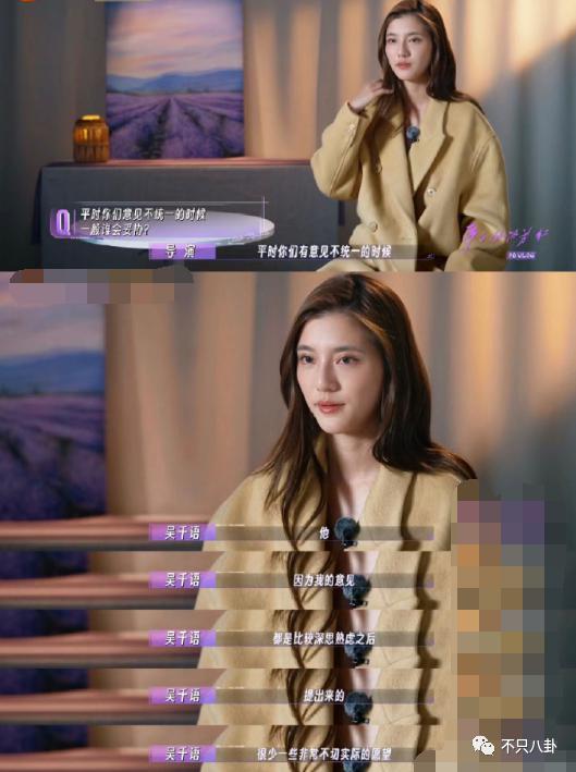 吴千语似乎是关系里的主导者,称两人有分歧时一般都是听她的,因为自己的决定都经过了深思熟虑,很少有不切实际的幻想↓