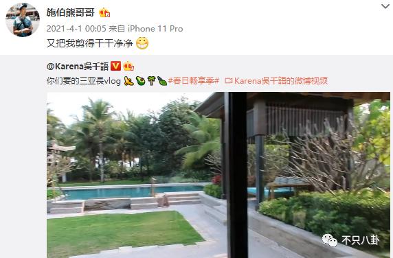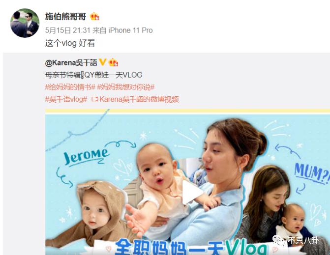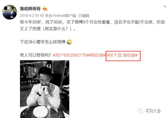 甚至带#吴千语 施伯雄#tag发文,有点子可爱