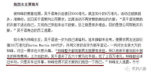 林峰的友人还曾爆料,林峰曾在欧洲一口气花上百万港元给吴千语买爱马仕包。