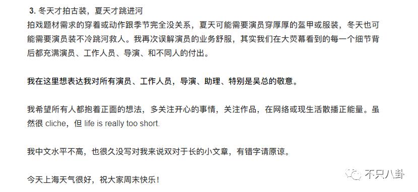 他甚至还会写文章总结自己从吴千语身上学到的优点。