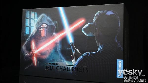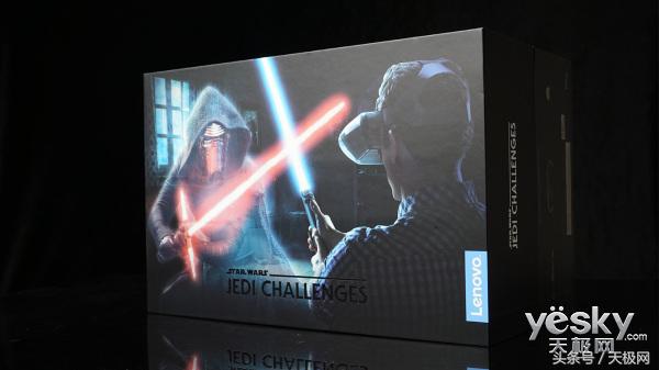 联想Mirage的外包装就很有归属感,购买过星战周边的童鞋一定不会陌生!大气包装盒正面印有“Star Wars JEDI Challenges”字样,搭配凯洛伦与玩家用光剑对战的画面看上去就让人有种跃跃欲试的感觉。