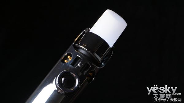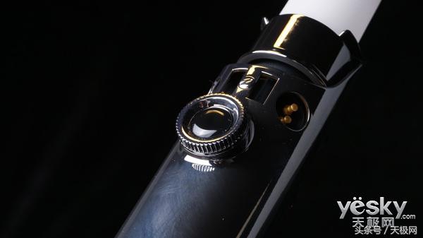 另外靠近光剑顶部还有一枚圆形按键,这枚按键在游戏中可以起到光剑“校准”光剑的作用。