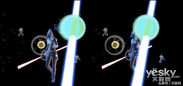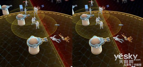 在这款游戏中,光剑的作用类似于鼠标,同时通过头部追踪可以利用屏幕上的选点,选中目标“集火”!“策略战斗”是三款游戏中场面最大的,建议大家坐在地上去玩,轻松并且容易把控全局,查看细节!