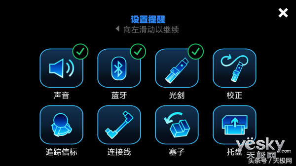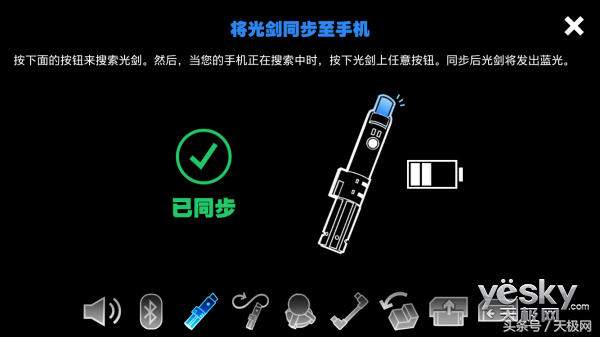打开《星球大战:绝地武士》应用首次确认进入游戏会有详细介绍!首先调整音量,然后就是光剑控制器与手机的蓝牙连接。光剑未连接时发出白光,在连接后会发出蓝光。蓝牙连接的过程很快,在应用中点击“搜索光剑”后基本秒连,之后在启动应用时开启光剑的情况下基本上都能快速完成连接。