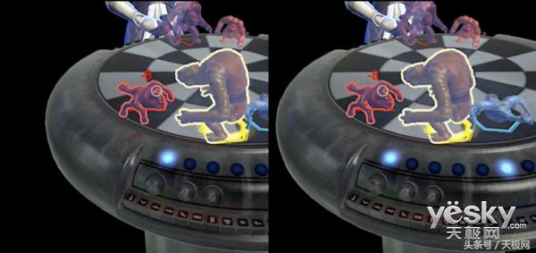 追踪信标的作用相当于定位系统的坐标原点,AR影像均以此为基础,同时结合头显上两个传感器实现用户三维定位,能够在1.5米x3米的空间内自由移动。