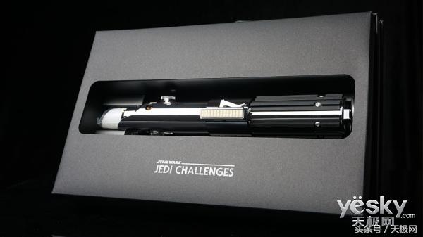 开启包装盒后,最先进入视线中的就是这把1:1还原的光剑控制器,银色镜面表面看上去很有质感。