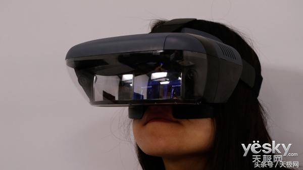 与此同时,你也能看到头显前方的挡板是透明的。因此在佩戴后能够看清现实场景,进而搭配全息影像让玩家获得增强现实游戏体验。当然这样做的优势不仅于此,能够看清现实场景意味着游戏过程中玩家自己就能清楚地了解当前所处方位(不会像VR体验那样完全脱离现实),遇到障碍物也能够进行躲避,及时自己一个人时也能轻松、安心的体验游戏。