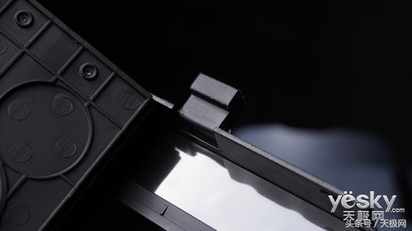 联想Mirage放入手机的插槽位于头显左侧,掀开保护外壳将手机托盘取出即可将手机安稳的放在里面。同时为了支持用户使用耳机体验,在头显后端还为耳机线预留了出口。