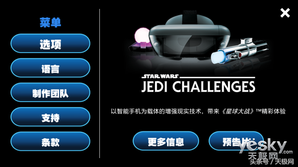 在手机托盘上有两个按扣,作用就是根据手机不同的尺寸进行固定。然后把托盘放入头显中,将数据线与头显连接,然后合上保护壳,戴上头显,拿起光剑控制器,按下任意键,层现在你面前的就是“星战星系”。