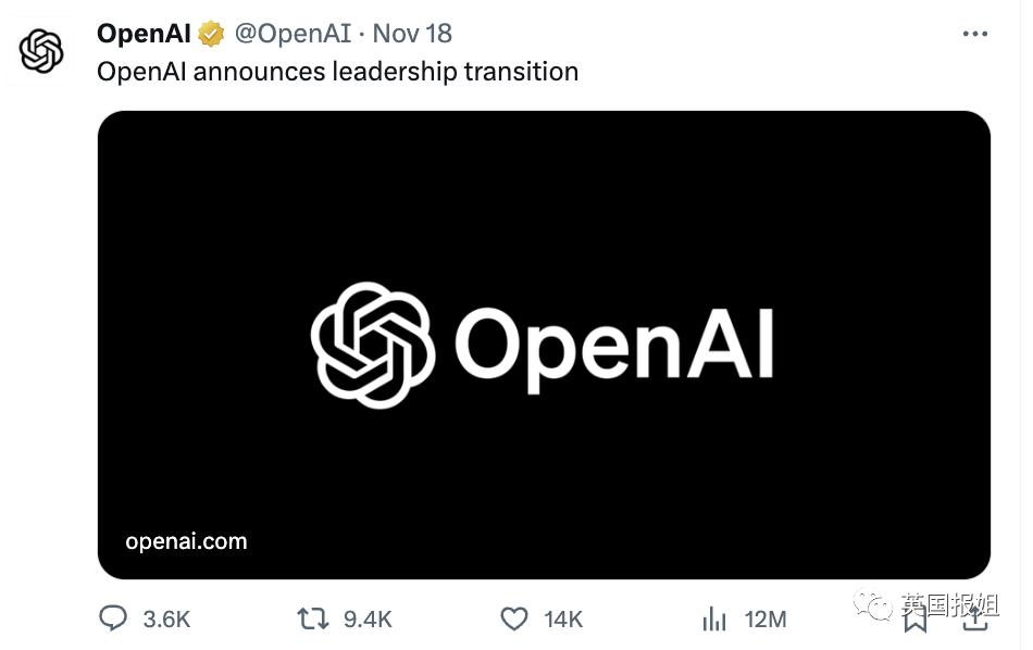 (OpenAI 在 X 上宣布更换领导层)