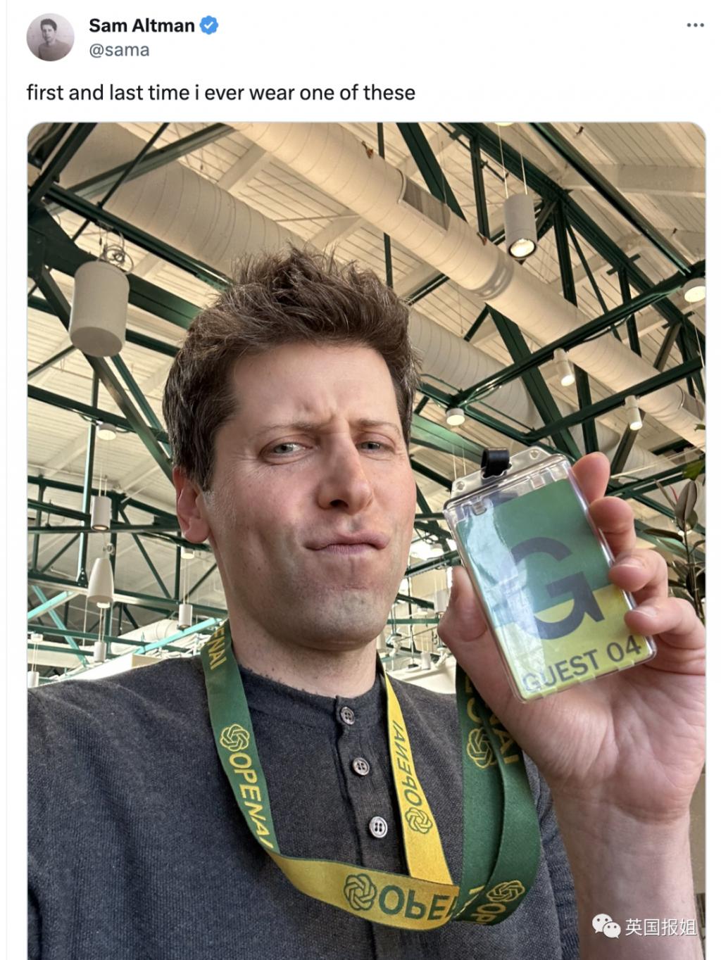 他在 X 上发出了自己戴着访客卡的图片,表示:" 这是我第一次、也是最后一次佩戴它。"