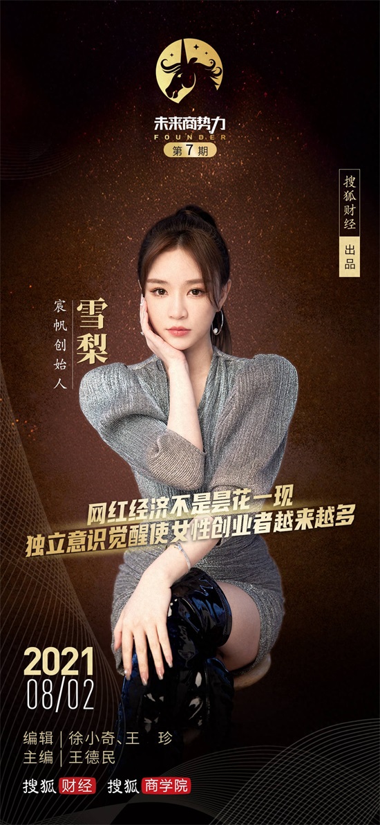 雪梨:我身份比较多,最早是网络红人、淘宝店店主,慢慢地成为青年企业家、女性企业家,到现在是雪梨直播间的主播。我身上有很多标签,但我不会刻意去成为任何一个标签。我会尽量做好我的每一个角色。不希望别人定义自己,未来有无限可能。
