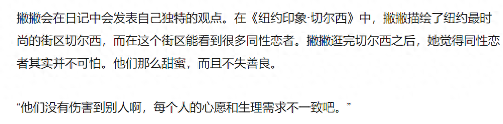 所以,在后来她给自己设立的人设中,她的很多面向都和这些相反,比如文艺、不世俗、洒脱等。