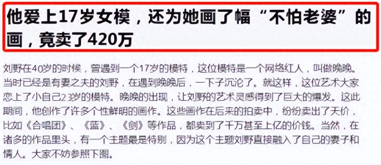 很快,她在一个线下展览活动上认识了画家刘野,并打得火热。