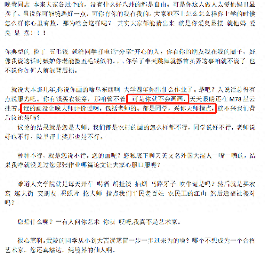 只是后来上某档节目的时候,有网友专门发帖这样形容她:“觉得这个姑娘好骚,骨子里带的,摆的姿势以及媚笑等等。无法将她与热爱艺术联系起来。”、“节目中我看到一个不自然、刻意、故作洒脱的晚晚。”......