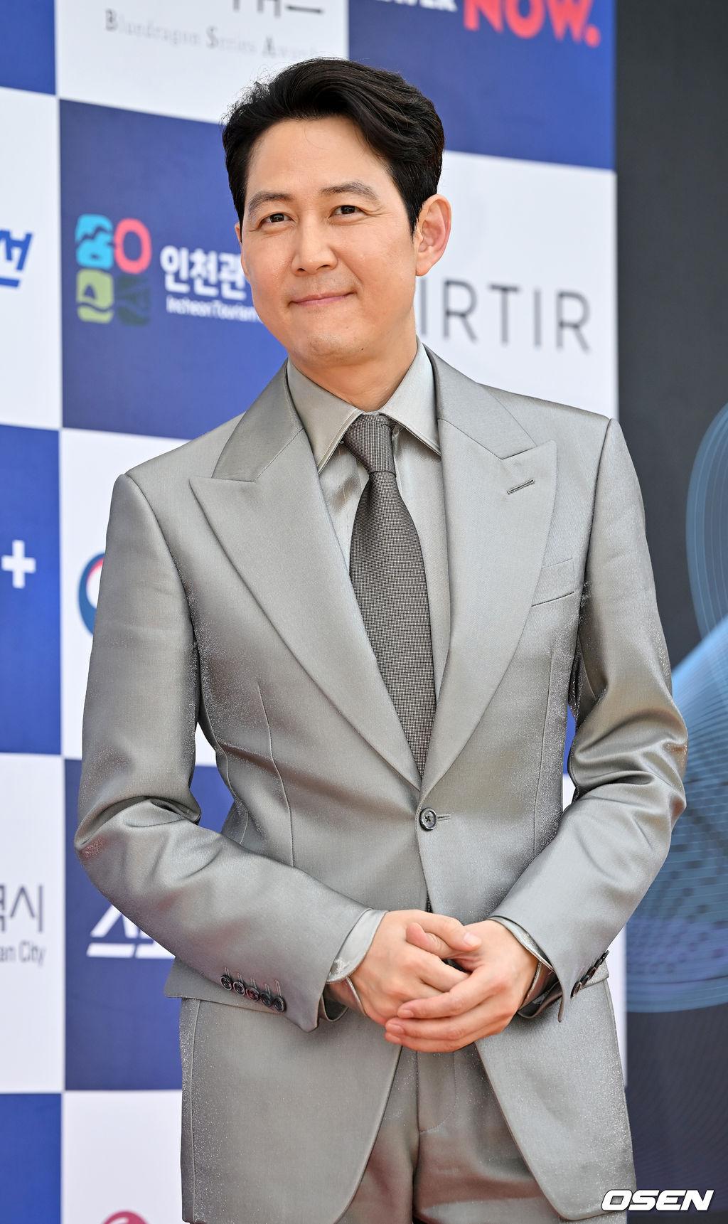 男星方面,凭《鱿鱼游戏》角逐“视帝”的李政宰以一套银色西装登场。