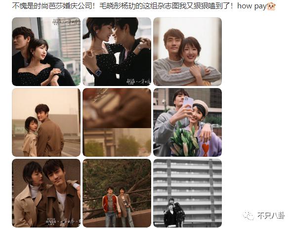 因为热度高有话题,两人还趁热打铁给粉丝们来了几波超强甜蜜输出——连续合作拍摄了两个短片、三个杂志,线下各种互 cue。