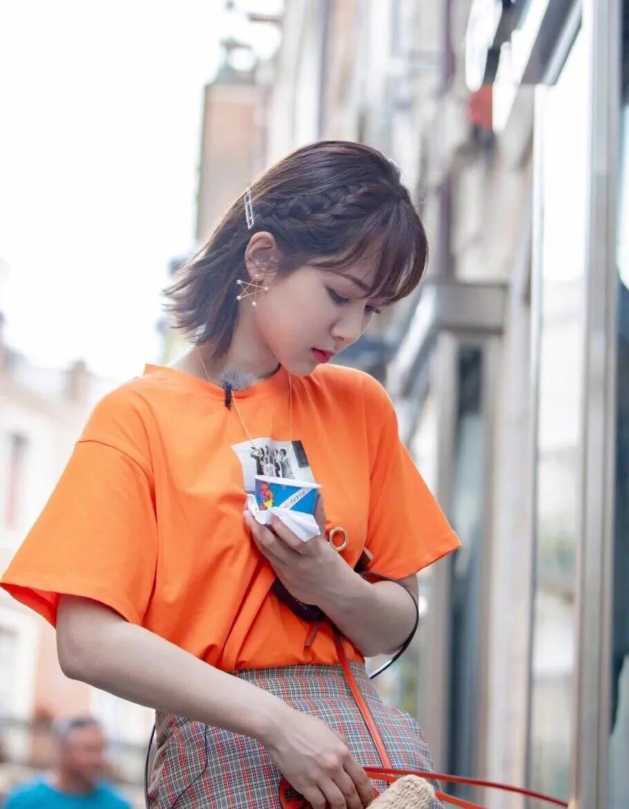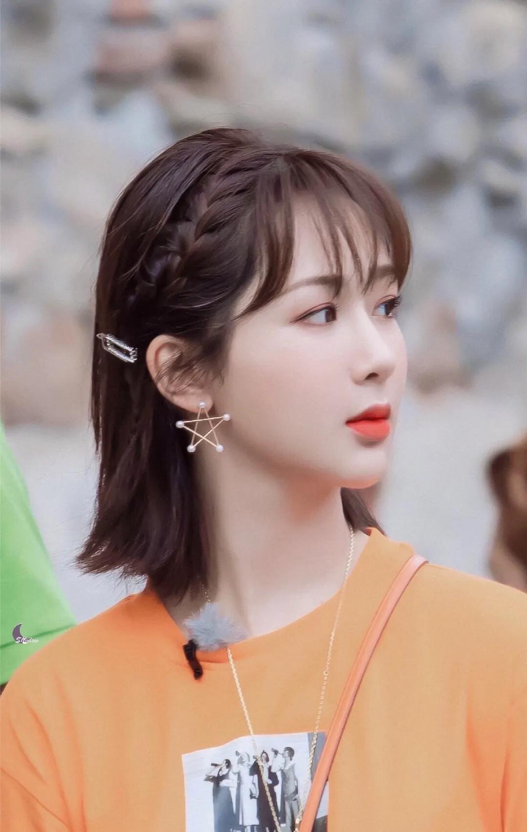 现在呢,跟着明星学呀,想要变得时髦非常简单,找一个跟自己差不多的短发明星照着来就是了。作为中长短发,脸上有些肉肉,那我就直接跟着杨紫学小短发怎么扎了。