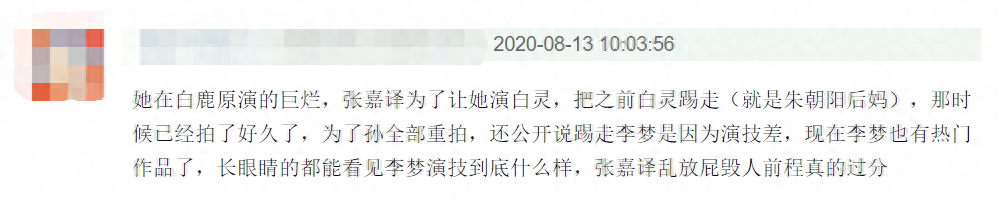 随后她还与张嘉译共同合作了《白鹿原》,在剧中饰演"百灵"一角,结果却被曝出该角色原本是由李梦饰演,且已经开拍了两个月,因为这次换角导致所有戏份重拍。