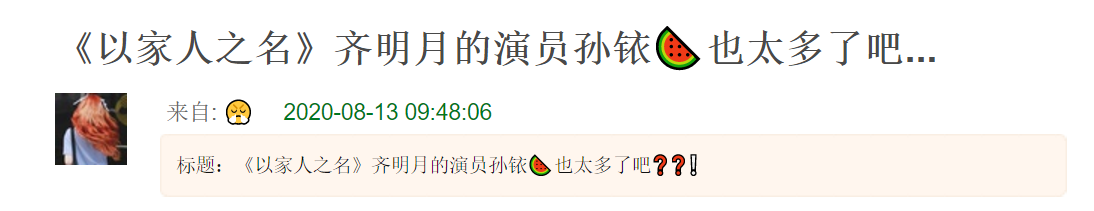 不过人红是非多,8月13日就有网友发帖称,在剧中饰演女主闺蜜齐明月的演员孙铱,瓜也太多了,引起了不少吃瓜群众的注意。