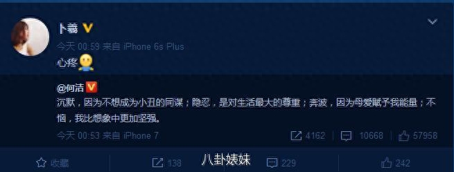 “何洁把自己最好的青春和最能事业提升的时间都给了他, 签约华谊兄弟五年 三年连生两胎只为他,多次表态家庭比事业更重要 结果赫子铭靠何洁带各种节目资源,最后婚内出轨,现在为了争夺抚养权不惜泼脏给何洁诬陷何洁出轨,可怜何洁如此遇人不淑 这么多年的打拼今天换来的却是这样的结局”心疼何洁。
