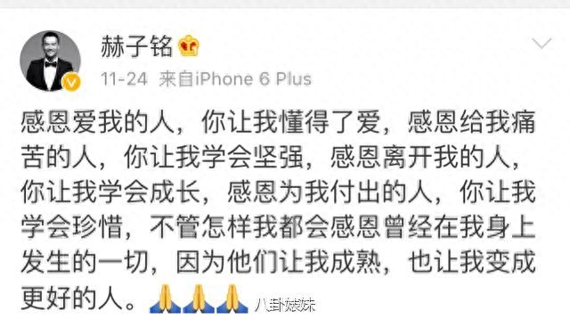 赫子铭以前之前几乎每条微博不是何洁就是公益,可最近一个月,完全没互动了,更是在11月24日发了如此意味声长的一条: