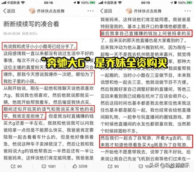 最近这辆黑色“大G”也是由乔妹自己拿一半,乔妹父母拿一半购买,小小酷哥并未出一分钱。