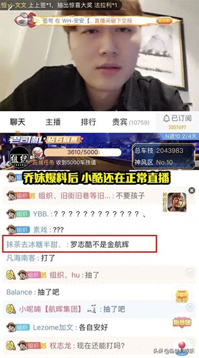 而在“乔妹”发布微博爆料时,小小酷哥还在直播间正常喜笑颜开的直播。
