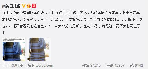2月27日,微博微信圈火爆的看相同裙子却有不同颜色照片