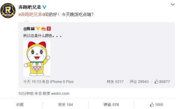河北新闻网讯(清晨)2月27日,陈赫发出一张黄白红相间的机器猫图片,并说“所以这是什么颜色。。。”,似在模仿今日微博微信圈火爆的看相同裙子却有不同颜色照片,卖萌意味浓厚。陈赫微博发出后,奔跑吧兄弟官方微博马上予以转发,并说“问的好!今天晚饭吃点啥?”,由此,众多网友推测“这是跑男2有陈赤赤的节奏嘛”。