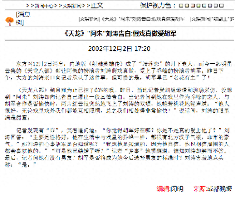 毕竟她曾大胆对媒体爆料,说:“自己就是喜欢上了乔峰的扮演者胡军”。