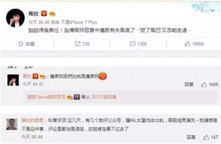 本来,刘涛准备以沉默应对此事。可谁知道,她的好闺蜜蒋欣突然插刀,以一句“伤害我姐们儿就是伤害我”,彻底坐实了刘涛的嫌疑。