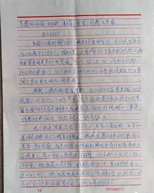 温海萍说,拿到死刑判决书时,人彻底崩溃了,父母都是农民,没有啥背景,很多狱友说二审改判的希望几乎没有。”我当时和父母也见不上面,既然判了死刑,我就想好自己的后事,给父母留遗书……”温海萍说,“这份遗书我至今都保留着,每每看起就会流眼泪。”当时,看守所里的狱警给狱友都交代了,晚上要留人值守,专门看护他,怕他一时想不开寻短见。那几天,非常难熬,他只能躲在被子里哭泣,感觉天彻底塌下来了。狱友给他拿烟抽,让他缓解痛苦。本来不抽烟的他,也开始吸烟。