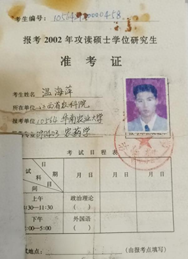 温海萍考研后就被抓,后来在狱中服刑,委托请一位同学帮忙查了分数,371分,考上了,他当时报考的是华南农大农药学专业。