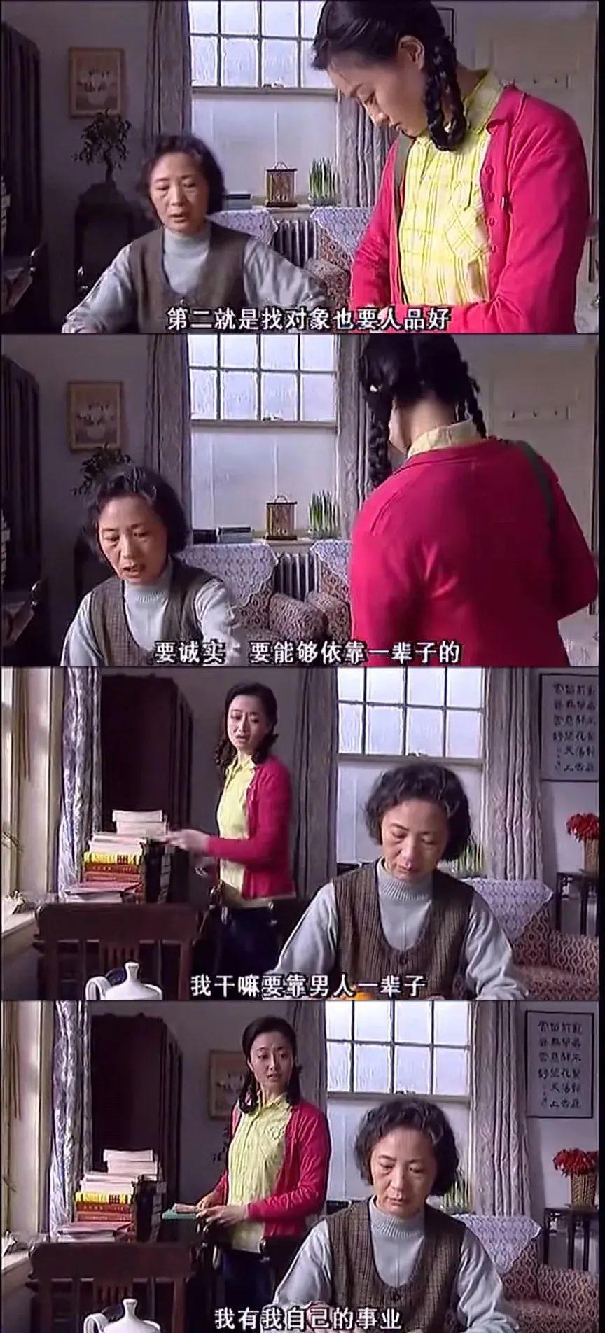 陈青的妈妈,一个在副食店卖菜,没文化的老太太,生怕女儿做家庭妇女,直发愁: