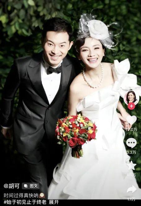 紧接着胡可又发了两人结婚旧照,时光刹那而过,留不住青春,却留住了幸福。