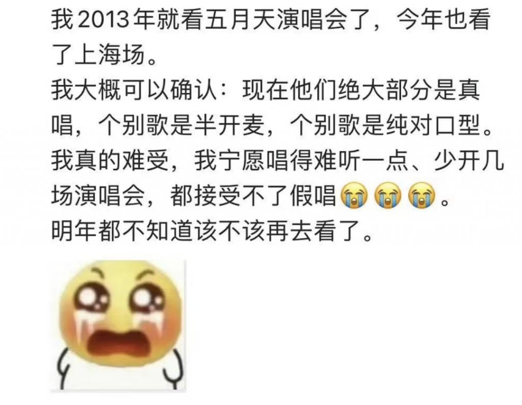 最初是有人发现五月天疑似在演唱会上 " 对口型 ",觉得接受不了。但这件事只在小圈层内传播了一下,并未引发公众注意。